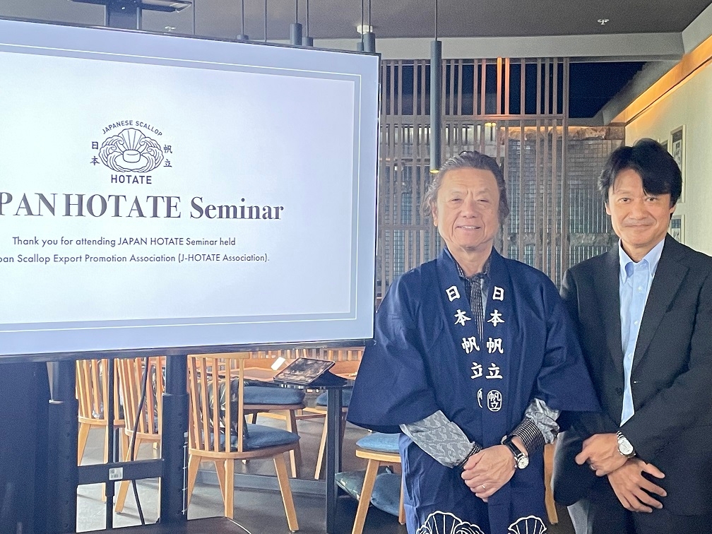 On January 15th, "JAPAN HOTATE" seminar was held at the Japanese restaurant "TATSU" in the InterContinental Hotel in Kuala Lumpur. There was also a cooking demonstration by TATSU's master chef, Mr. Masuda. Scallops are one of Japan's most valuable seafood products. "JAPAN HOTATE" is known for its large size, thick and juicy meat, and exceptional taste. Its deliciousness remains the same no matter how it is cooked. Additionally, "JAPAN HOTATE" inspires creativity and enhances any dish. It can shine both as a main ingredient and as a supporting element in a wide variety of dishes. It is also a high-protein, low-fat food. People in Malaysia are sure to love it as well!