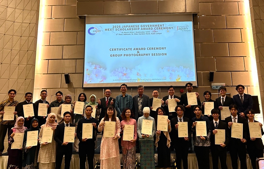 On 18 March, Embassy of Japan co-hosted the send-off ceremony for the 2026 Japanese Government (Monbukagakusho: MEXT) Scholarship recipients with Japan Graduates’ Association of Malaysia (JAGAM). This year, 33 Malaysian students (as of 18 March) will pursue their studies in Japan as the 2026 Japanese Government (MEXT) Scholarship recipients.