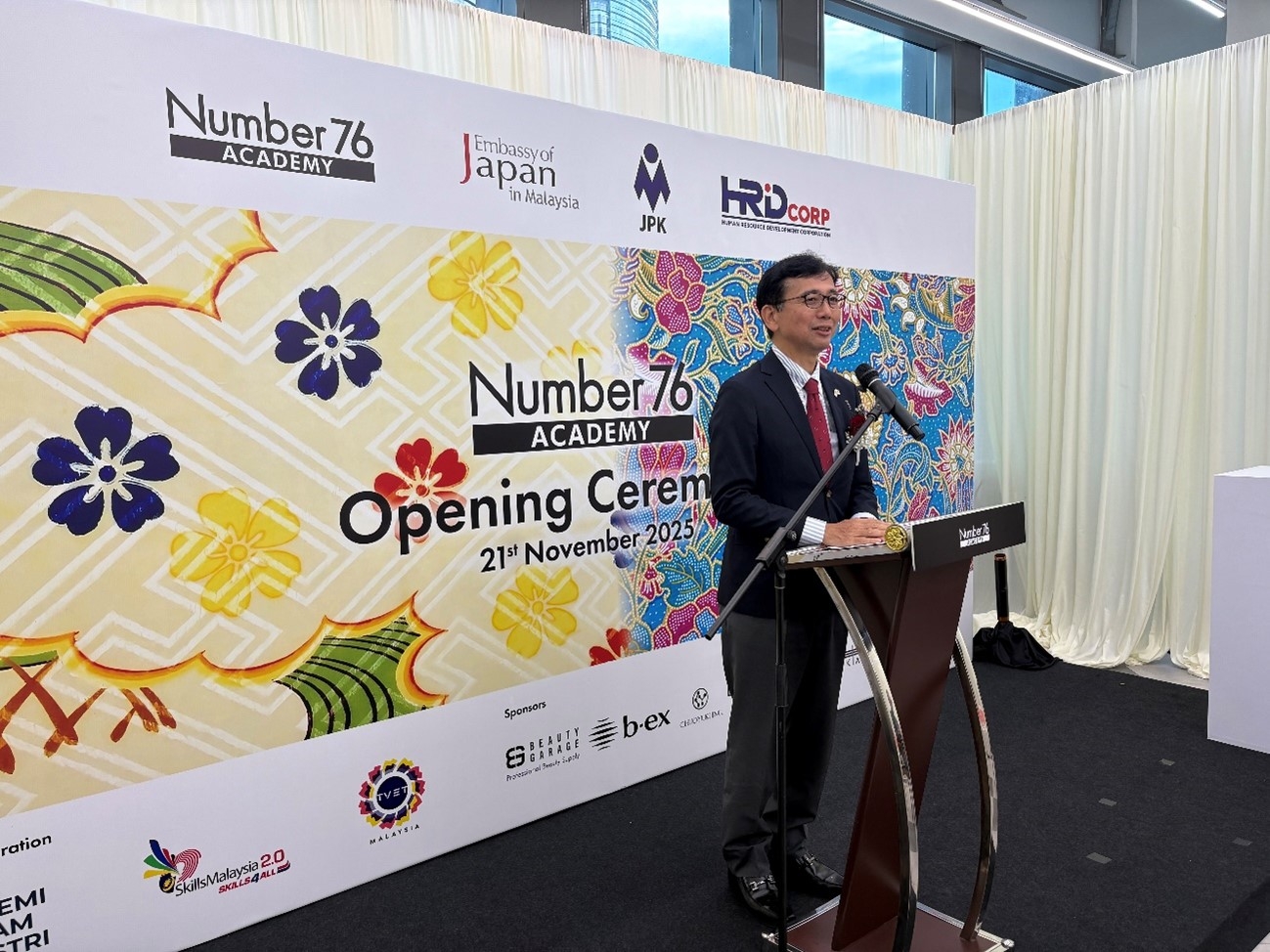 On 21st November, Ambassador SHIKATA Noriyuki attended the opening ceremony of Number76 Academy. Number76 Academy is the first Japanese hair dressing academy to be accredited by the Department of Skills Development, Ministry of Human Resources in Malaysia, aiming to nurture the next generation of hair stylists through training programs integrating Japanese refined techniques, culture and traditions.