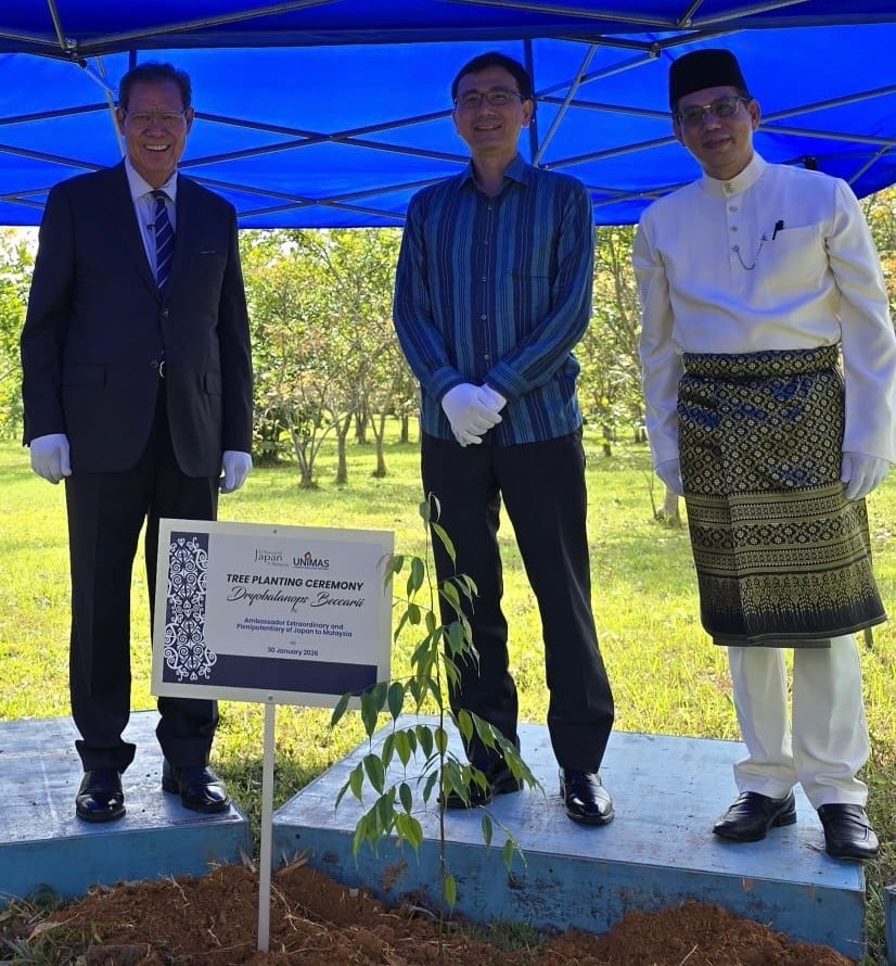 訪問の中で、四方大使は、生物多様性などの生態学、環境科学、工学、医学等の分野におけるUNIMASの高い専門性を評価するとともに、学術交流、共同研究、さらには「高砂熱学工業・UNIMAS教育の森」プロジェクトをはじめとする取組を通じた継続的な協力を歓迎しました。