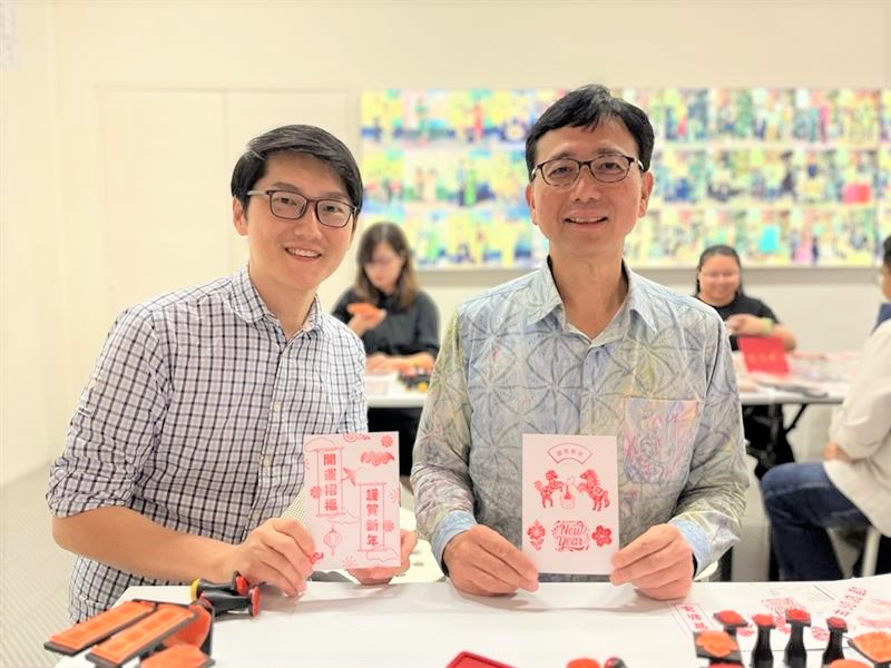 本イベントは、元日本留学生であるラム・チン・フー氏の主催により、年賀状や日本のお正月行事について紹介するもので、年賀状の作成体験、年賀状や年賀切手の展示、書道体験、お正月飾りの展示などを行っています。