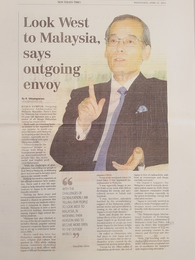 堀江正彦 元駐マレーシア日本国特命全権大使へのマレーシア工科大学名誉博士号授与について
